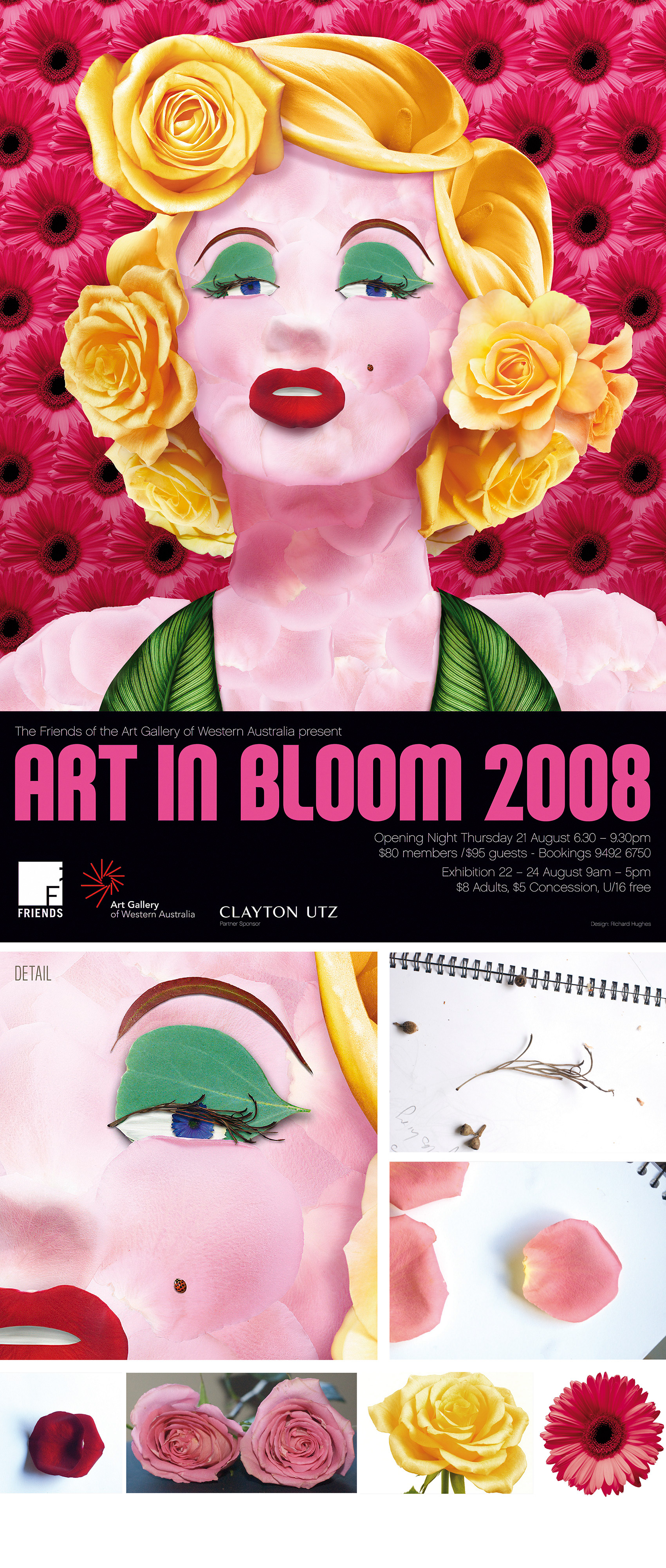 Artists were invited to make floral works of art inspired by famous artworks. This poster for the event was inspired by Warhol's Marilyn Monroe. I particularly like her ladybug beauty spot. Art Gallery of Western Australia