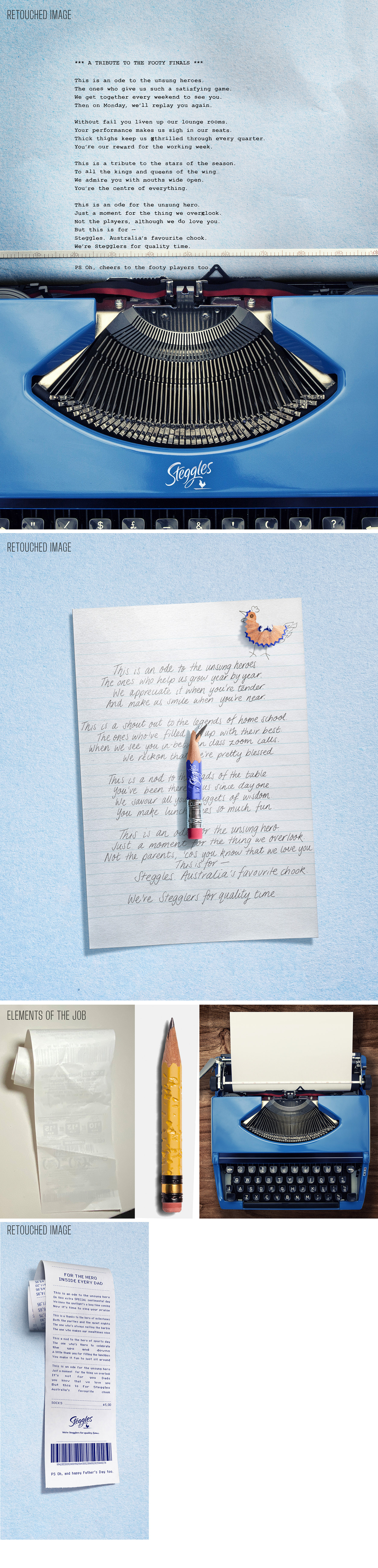 Compositing and grading mainly, here. Steggles, M&C Saatchi Sydney